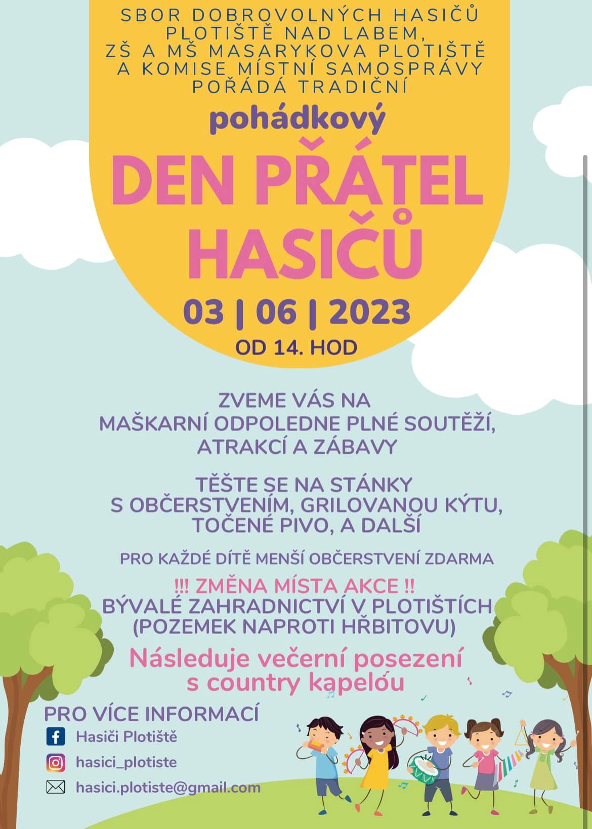 Den přátel hasičů se bude konat 3. června od 14:00. Bližší informace v příloze sdělení.